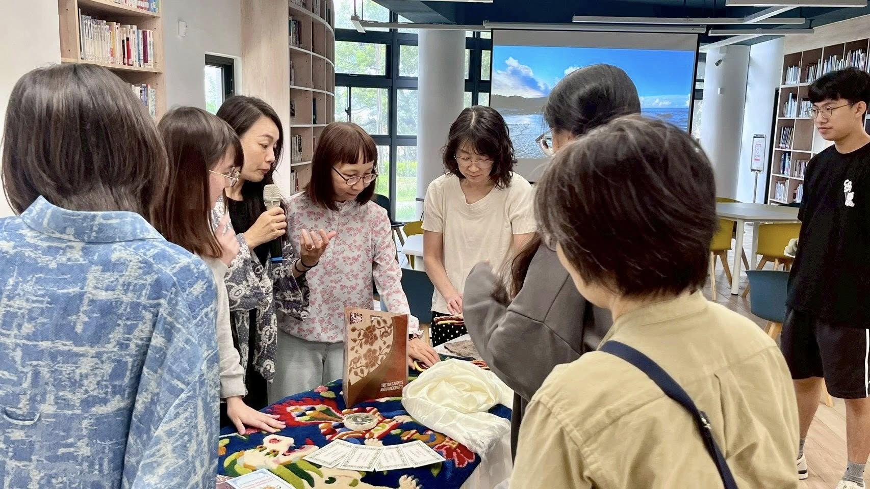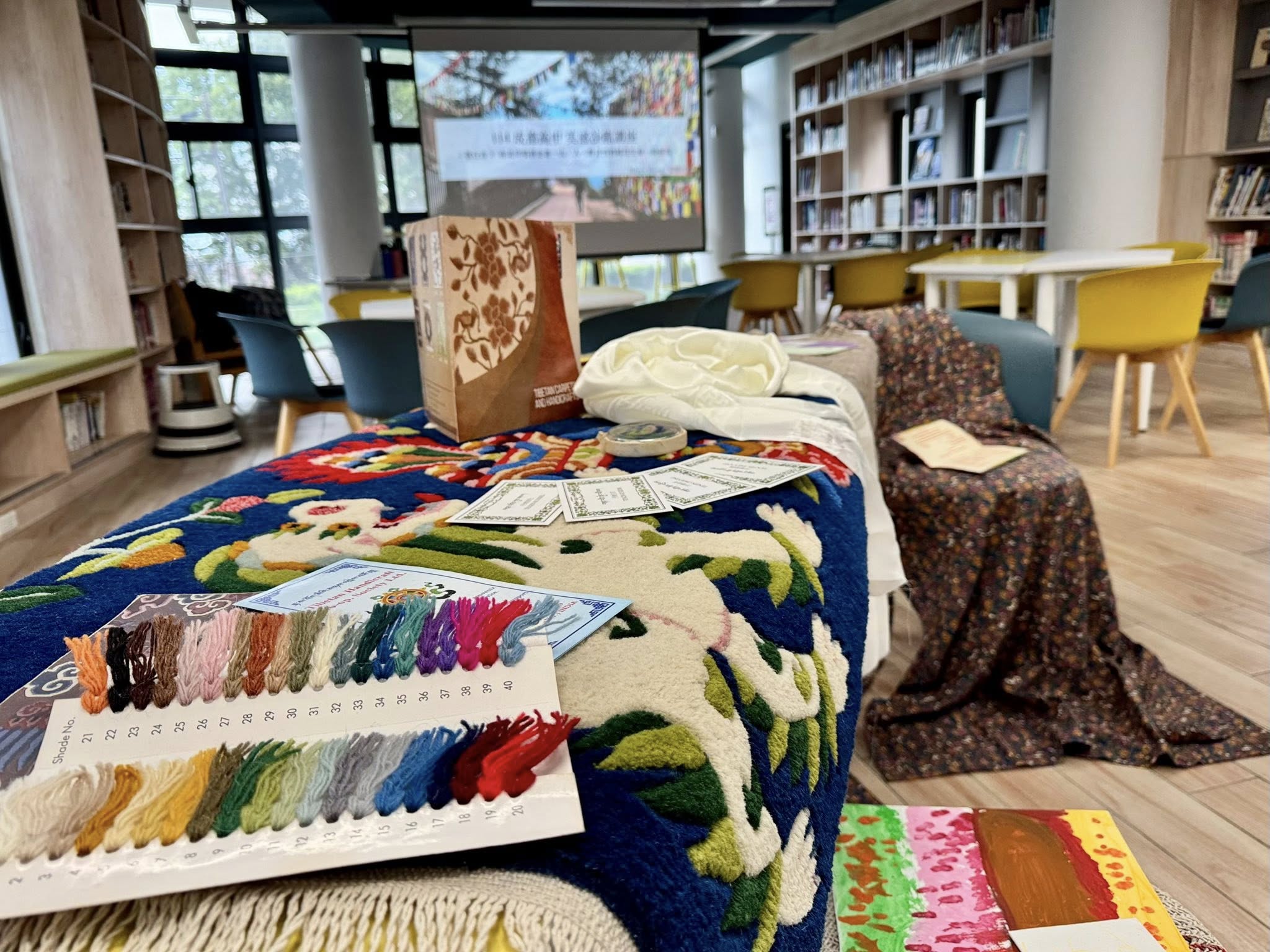 醒來後,北印旅居帶回的羊毛手工織品、喜帖、記念小物⋯馬上引起大家的好奇,在馨鈺的說明中,我們感受到藏民的單純與熱情,同時觸摸著來自大自然的織毯與毛衣,還有同學幸運地穿上馨鈺帶回的藏民服飾,好漂亮!