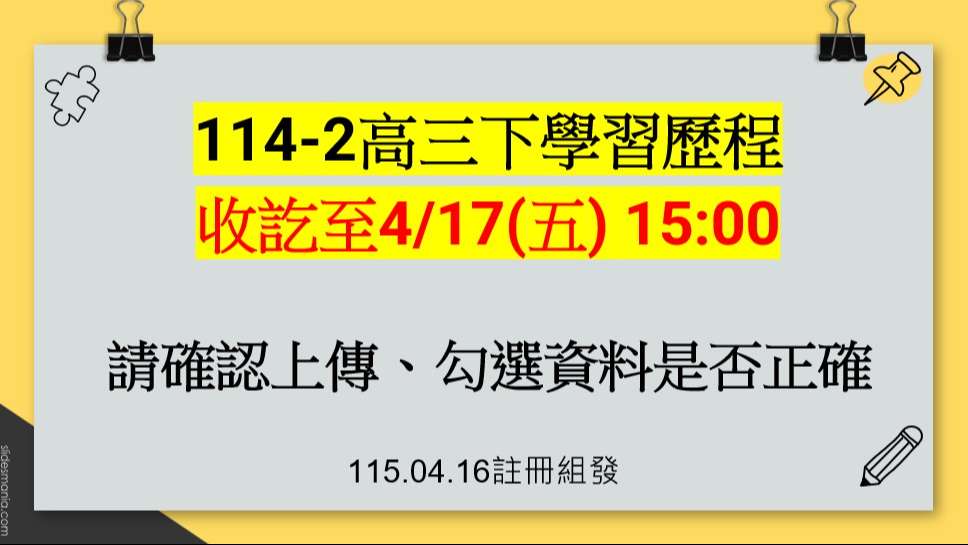 114-2高三下學習歷程收訖至4/17(五)15:00