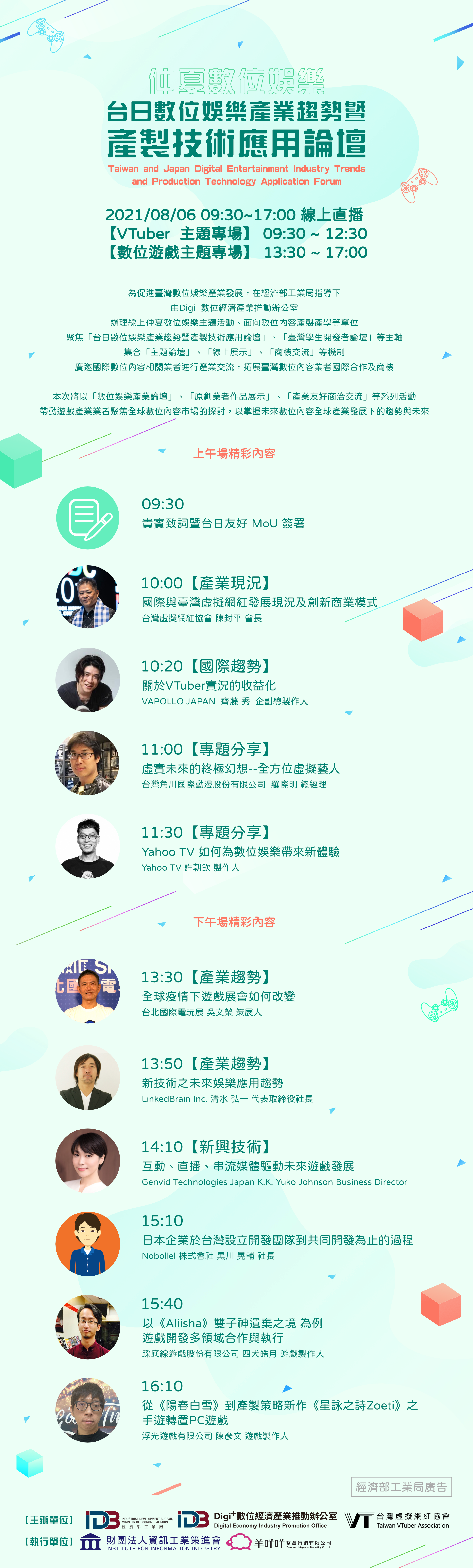 財團法人資訊工業策進會等單位辦理之110年度「臺 日數位娛樂產業趨勢暨產製技術應用論壇」
