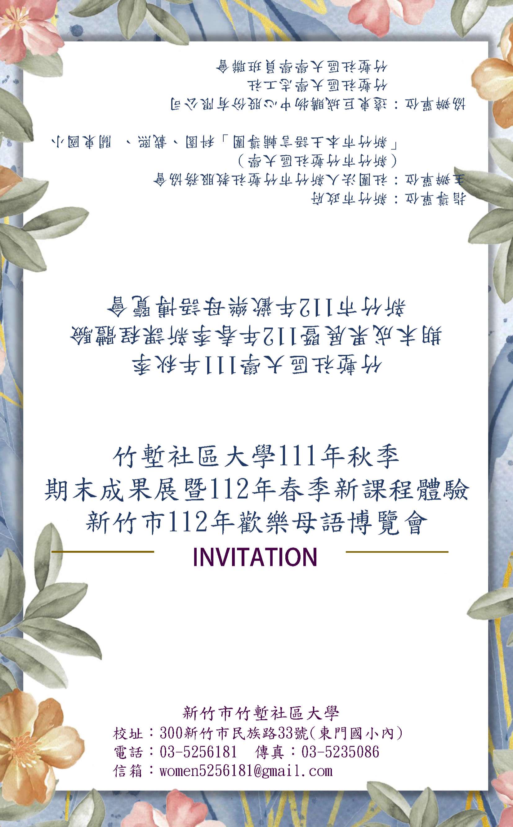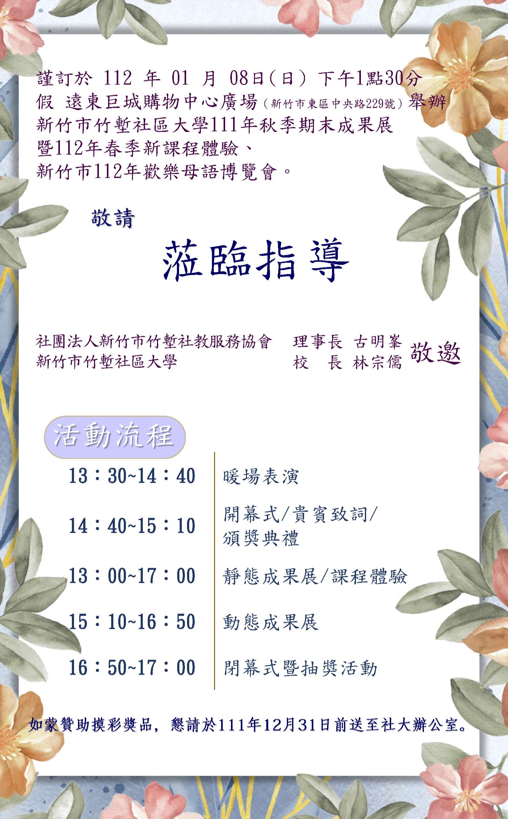 (一)活動時間:112年01月08日(星期日)下午13:30至下午
