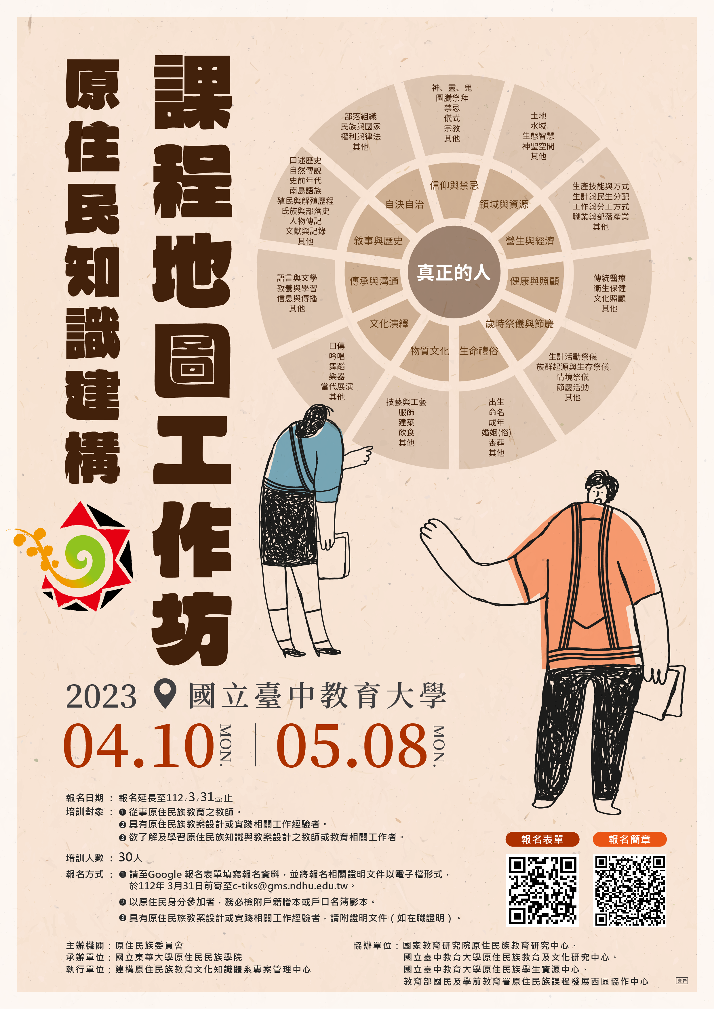 二、 旨揭活動辦理將針對國小、國中及高中不同學習階段進行原住民族教育文化課程地圖之應用與討論,以利推動原住民族知識課程發展以及增能教師原住民族知識課程教學能量。