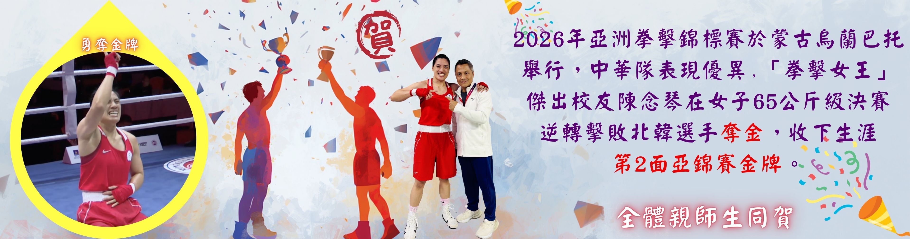 2026年亞洲拳擊錦標賽於蒙古烏蘭巴托舉行,傑出校友「拳擊女王」校友陳念琴在女子65公斤級決賽逆轉擊敗北韓選手奪金,收下第2面亞錦賽金牌。全體親師生同賀。